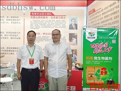 中国农业技术推广协会会长陈生斗先生(左)与百花生物马钦波经理(右)